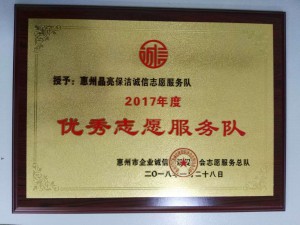 公司秉承“獻真誠汗水,創一流品質”的宗旨,堅持“服務第一、質量第一、客戶第一、信譽第一”的四大服務理念,通過多年的努力,在同行中率先通過IS09001質量管理體系認證、ISO14001環境管理體系認證、OHSAS18001職業健康安全管理體系認證、惠州市環境清潔服務甲級資質企業認證、惠州市高空作業資格認證、市政環境清潔維護企業甲級資格認證、有害生物防治服務企業資格認證等。